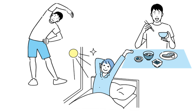 - 十分な休養:十分な睡眠は肝臓の修復・再生に不可欠です。横になっている姿勢は、立ったり座ったりしている姿勢よりも肝臓にいく血流が1.5倍に増えるため、肝臓の修復・再生につながります。